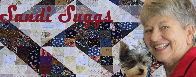 Sandi is a prolific quilter and with just a quick visit to her blog Frogpond Studio you can see as well. Be warned.. grab a cup of tea and maybe a cookie or two .. you will be entranced with all this lady does and be on her page for a while!